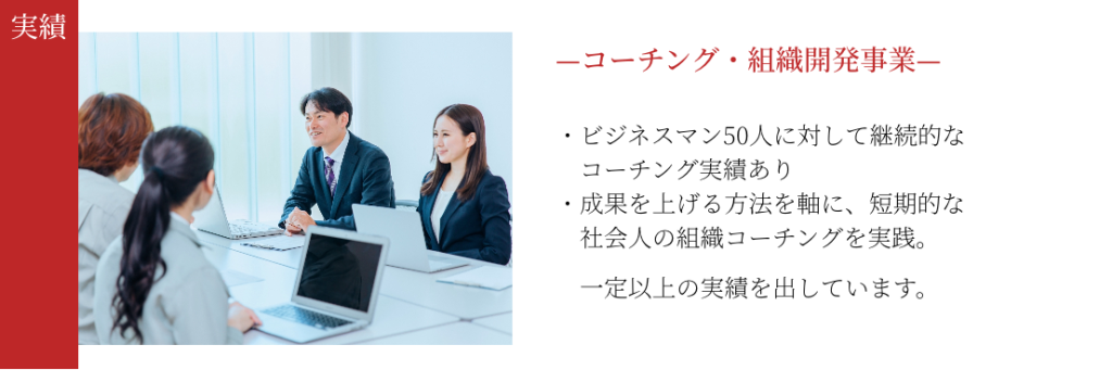 ・成果を上げる方法を軸に、短期的な社会人の組織コーチングを実践。
